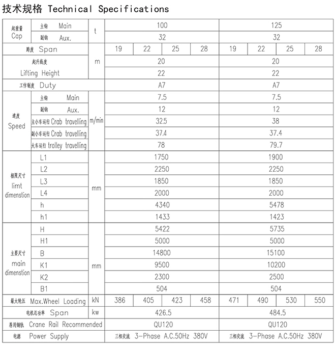 YZ型100、32~125、32t铸造起重机