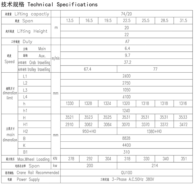 QDY型74、20t冶金起重机