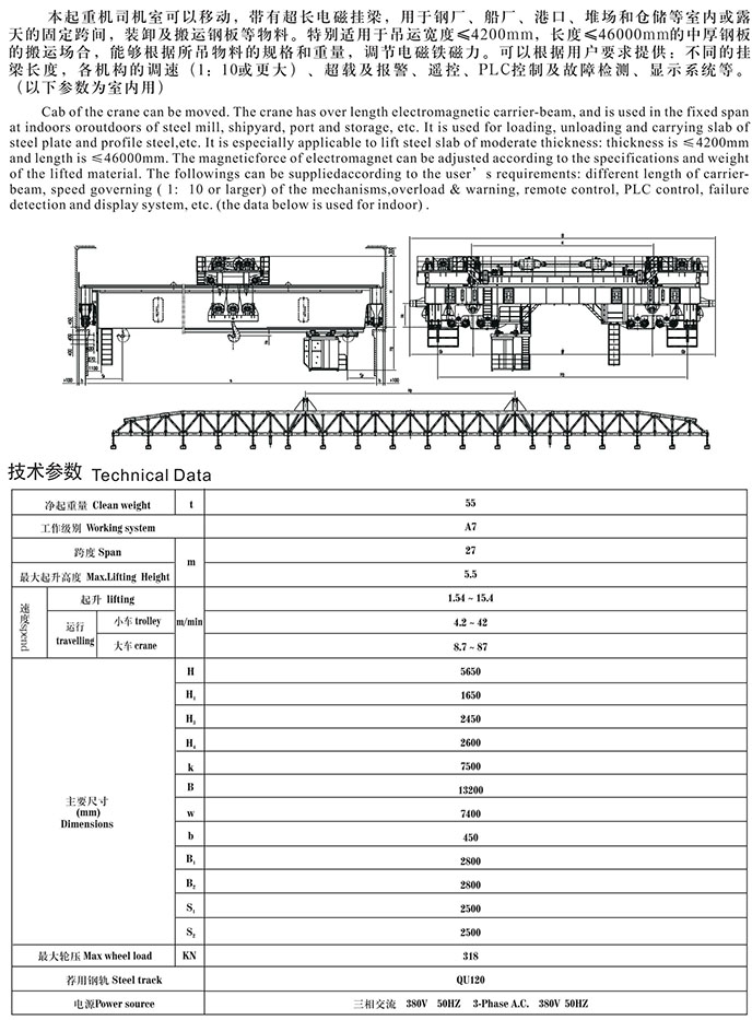 超长电磁挂梁桥式起重机